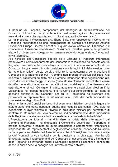4 novembre 2020 di liberalipiacentini | Immagine