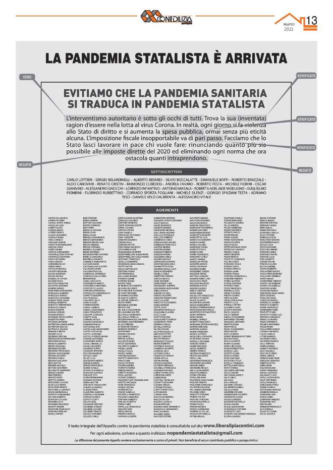 APPELLO CONTRO LA PANDAMIA STATALISTA