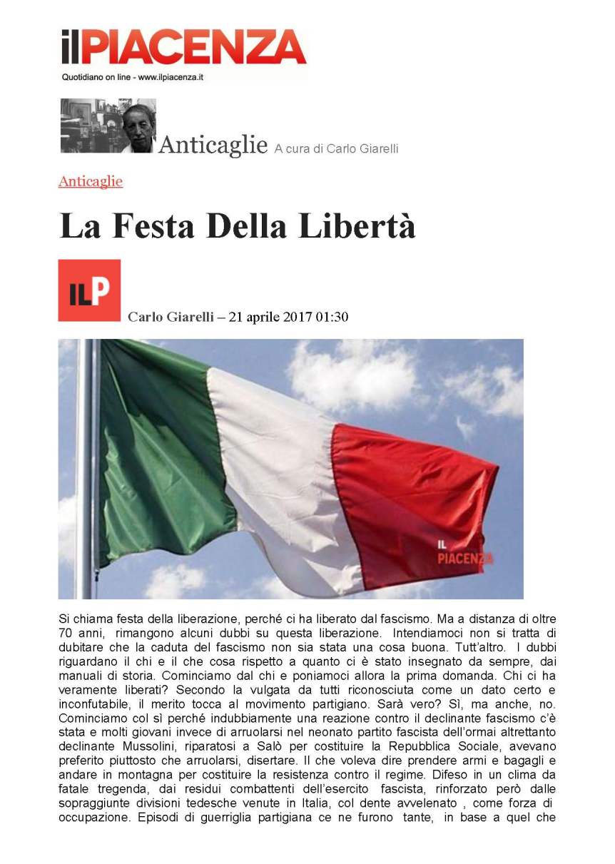 E’ la prima volta che a Piacenza si celebra ufficialmente il “Giorno della libertà”. Lo hanno sottolineato il sindaco e la Giunta comunale in un comunicato che ha condiviso l’iniziativa dell’Associazione dei Liberali piacentini che oggi – venerdì 9 novembre – ha organizzato, dalle 9 alle 19, una mostra nella propria sede di via Cittadella sui lager nazionalsocialisti e sui gulag sovietici. Alle 15 si è tenuto un momento di incontro con interventi sul significato di questa giornata, a cui hanno partecipato, in rappresentanza del Comune, il vicesindaco Elena Baio e il consigliere comunale Gian Paolo Ultori. Presente anche l’on. Tommaso Foti.