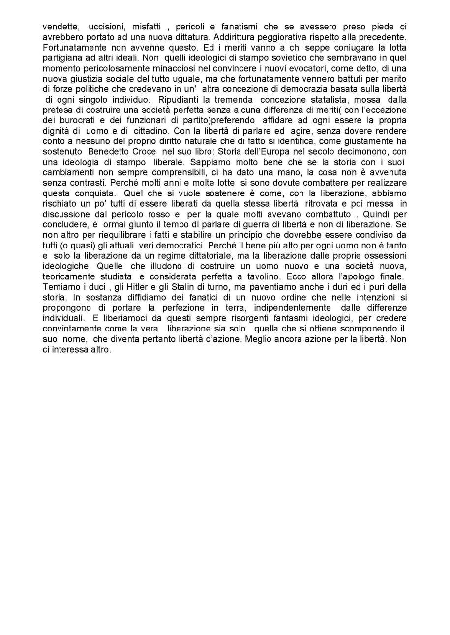 intervenuti – a nome dell’Associazione e si è soffermato sulla ricorrenza del 9 novembre, anniversario dell’abbattimento del Muro di Berlino. «Riteniamo – ha sostenuto – che debba essere celebrata né più né meno di altre celebrazioni. Contro tutti i totalitarismi, perché non si possono fare distinzioni tra coloro che uccidono la libertà. Chi parla solo di nazismo dice una mezza verità, che corrisponde a una falsità. Bene che si portino gli studenti a visitare i lager, ma raccontiamo loro che sono esistiti anche i campi di sterminio comunisti, dove hanno trovato la morte 60 milioni di persone. Abbiamo molto da fare, molto da demolire per ricostruire la verità».
