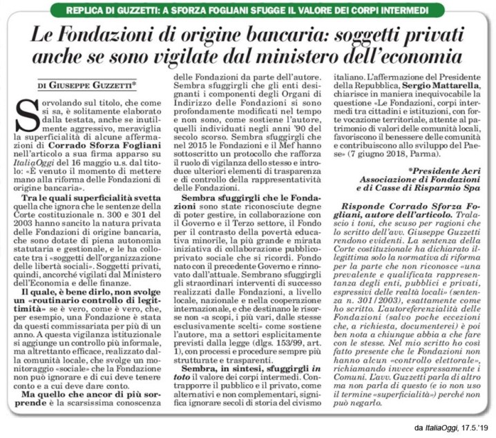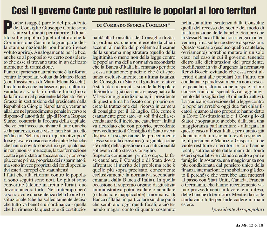 Articolo avv. Corrado Sforza Fogliani su MF 06.05.’20