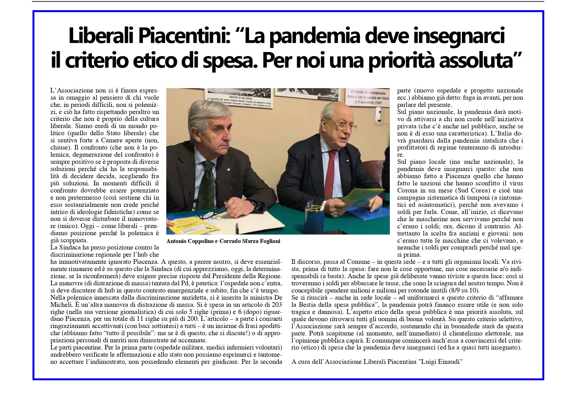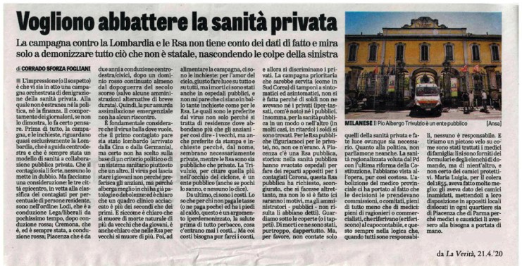 Articolo avv. Corrado Sforza Fogliani da La Verità 21.04.’20